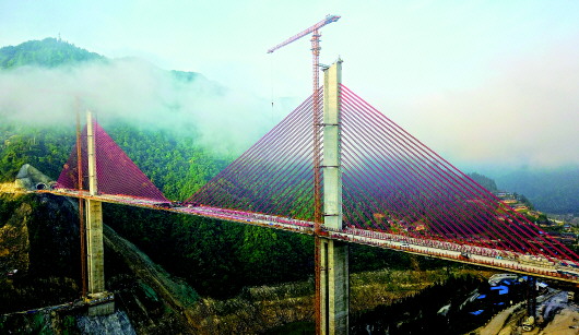 4月28日,贵州剑河至榕江高速公路控制性工程——清水江特大桥顺利合龙,预计今年6月底具备通车条件。 新华社记者杨文斌摄