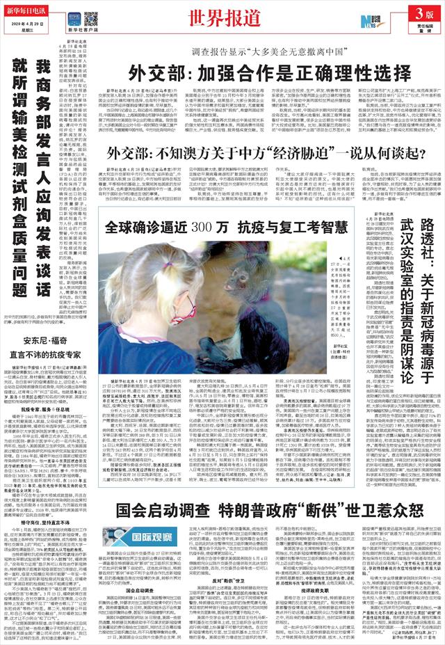 | ( 2020-04-29 ) 稿件来源:新华每日电讯 世界报道 |