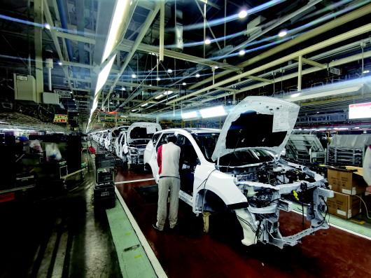 长城汽车天津总装二车间内,工人在生产线上忙碌。新华社记者李鲲摄 |