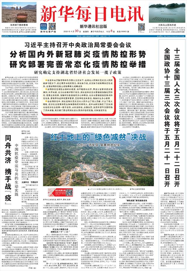 | ( 2020-04-30 ) 稿件来源:新华每日电讯 要 闻 |