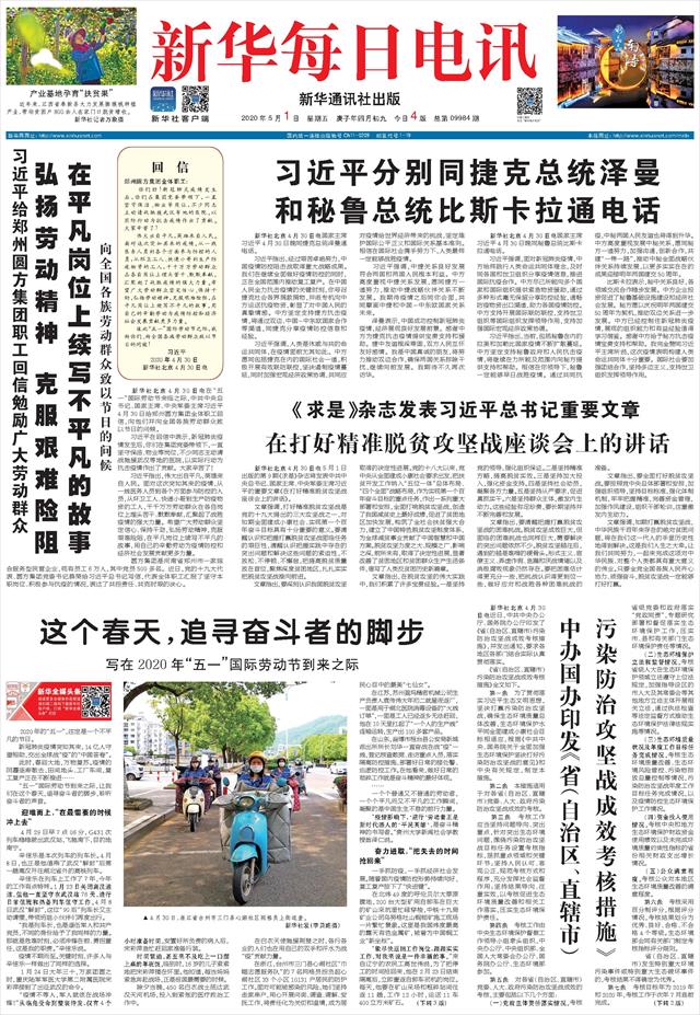 | ( 2020-05-01 ) 稿件来源:新华每日电讯 要 闻 |