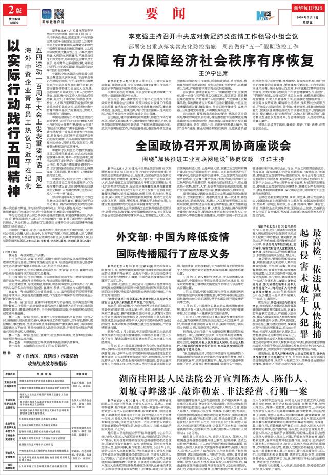 | ( 2020-05-01 ) 稿件来源:新华每日电讯 要 闻 |
