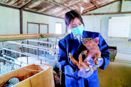 经不住家人一再要求,2018年,朱爱玲回到村里,和父亲搞养殖。“想以自己的学识,把养猪搞出动静。”她说。