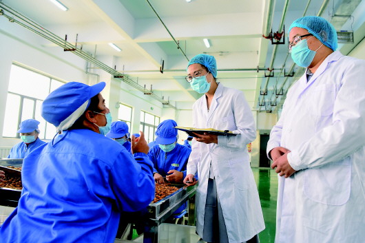 崔久秀(右二)在喀什疆果果农业科技有限公司调研收集职工的建议和心愿(3月28日摄)。 |