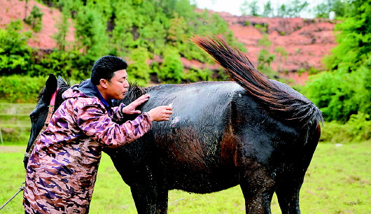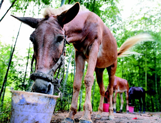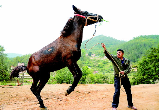 刚开始养骡马时,村里人都不理解余玉林,也不相信在山里赶着骡马能赚钱。“一开始我也不知道怎么训练它们,慢慢才掌握了骡马的习性。”余玉林说,有一次给骡马喂料,他和妻子不小心让骡马受到了惊吓,自己的腰被踢伤了,妻子的两颗门牙也被踢掉。