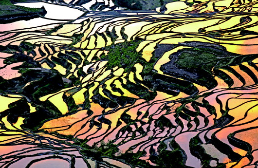 梯田中的光影流转