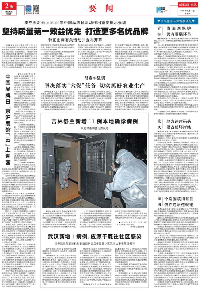 | ( 2020-05-11 ) 稿件来源:新华每日电讯 要 闻 |