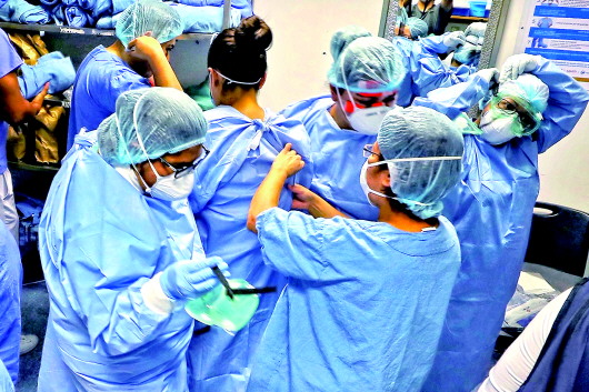 ▲在墨西哥首都墨西哥城的华雷斯医院,护士们在进入隔离区前穿戴防护装备(4月29日摄)。