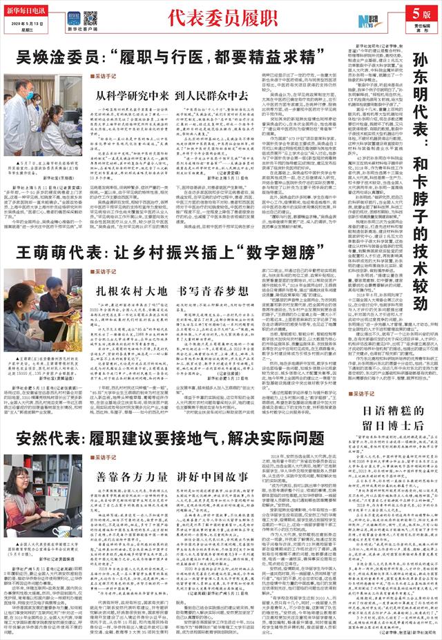 | ( 2020-05-13 ) 稿件来源:新华每日电讯 代表委员履职 |