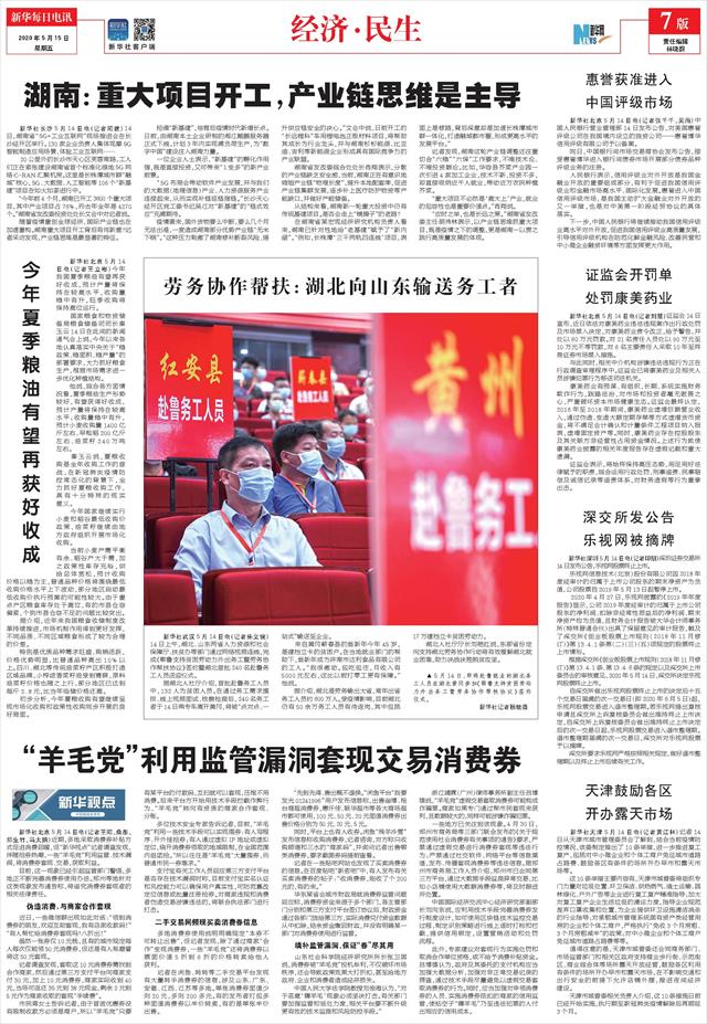| ( 2020-05-15 ) 稿件来源:新华每日电讯 经济·民生 |