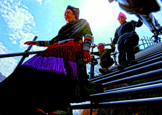 5月13日,四川省昭觉县支尔莫乡“悬崖村”——阿土列尔村高山区的31户贫困户搬到县城集中安置点。走下钢梯,走上楼梯,他们的居住条件实现历史性改变。