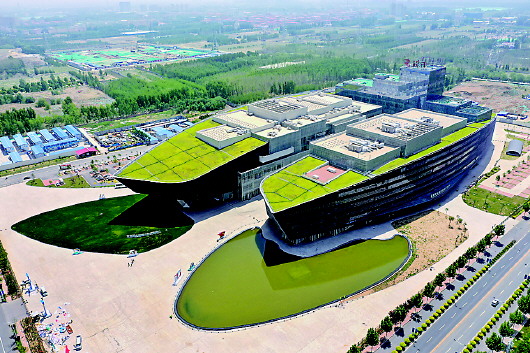 位于廊坊市经济技术开发区的京津冀大数据创新应用中心(5月13日无人机拍摄),是河北第一家大数据产业建筑综合体。 新华社记者王晓摄