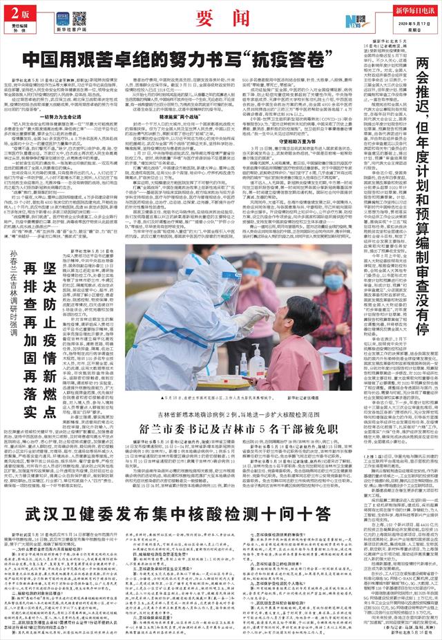 | ( 2020-05-17 ) 稿件来源:新华每日电讯 要 闻 |