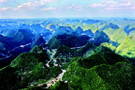 广西大化七百弄国家地质公园位于大化瑶族自治县西北部,是发育较为典型的高峰丛深洼地地区。 新华社记者张爱林摄