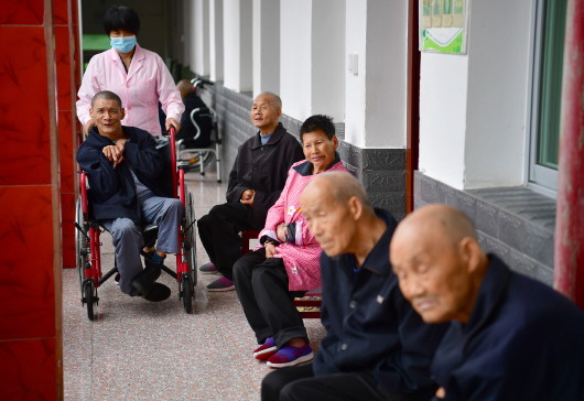5月7日,在汉阴县蒲双敬老院养护中心,护理人员推着供养人员活动。近年来,陕西省汉阴县针对全县特困失能、半失能人员,积极探索推行“医养结合+兜底脱贫”养护模式。当地民政部门以敬老院为基础,建成5所养护中心,使特困失能、半失能人员享受到包含基本生活照料和医疗护理在内的一站式保障。