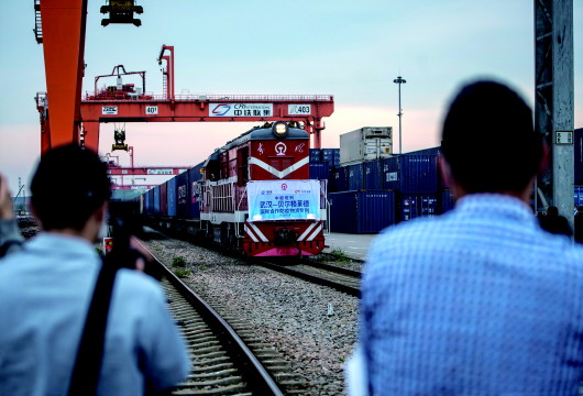 ▲5月9日,开往塞尔维亚贝尔格莱德的中欧班列(武汉)从吴家山站驶出。