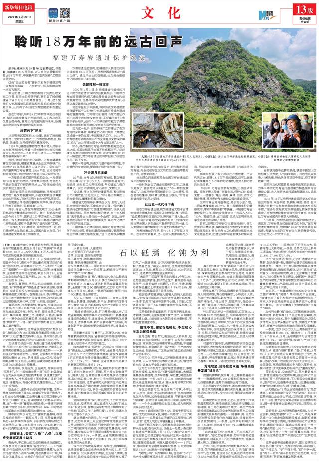 三明市林业局党组书记、局长刘小彦介绍,三明森林覆盖率78.73%,是中国最绿省份的最绿城市,享有“中国绿都”等美誉。伴随着万寿岩遗址保护工作,绿色发展理念进一步深入人心。“如今,‘推窗见绿、出门进园’已成为三明市民共享生态福利的写照。”他说。