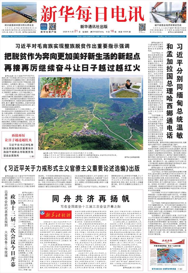 | ( 2020-05-21 ) 稿件来源:新华每日电讯 要 闻 |