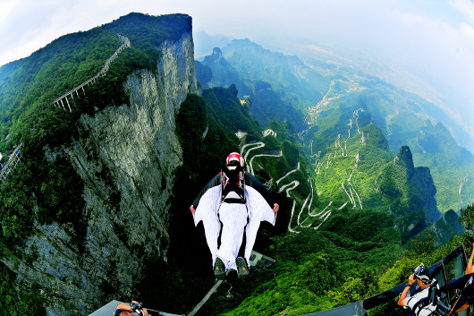 ![]() 2019年9月4日,第八届翼装飞行世界锦标赛选手在张家界天门山试飞。 新华社资料片 |