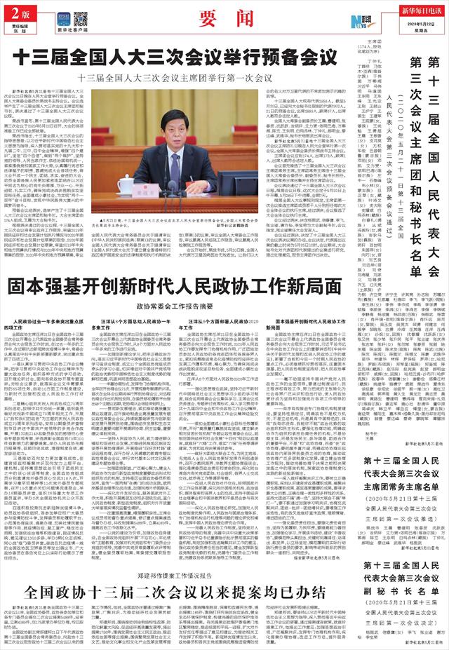 | ( 2020-05-22 ) 稿件来源:新华每日电讯 要 闻 |
