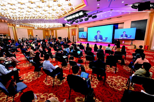 ▲5月21日晚,十三届全国人大三次会议新闻发布会在北京人民大会堂新闻发布厅举行,大会发言人张业遂就会议议程和人大有关工作回答了中外记者提问。这是记者在梅地亚中心多功能厅采访。 新华社记者陈晔华摄