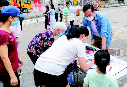5月22日,香港市民在街头签名,支持从国家层面建立健全香港特区维护国家安全的法律制度和执行机制。
