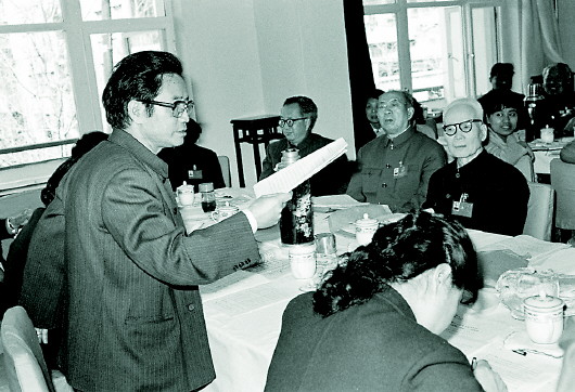 1986年4月3日,出席六届全国人大四次会议的四川省代表在分组会议上审议《中华人民共和国民法通则(草案)》。