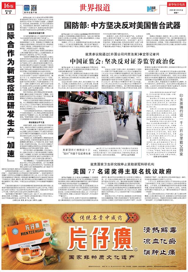 | ( 2020-05-25 ) 稿件来源:新华每日电讯 世界报道 |