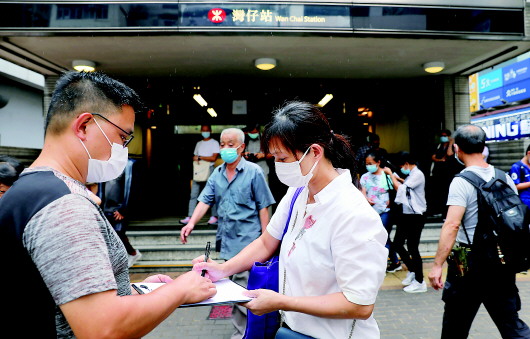 ▲5月23日,香港市民在街头签名,支持国家安全立法。