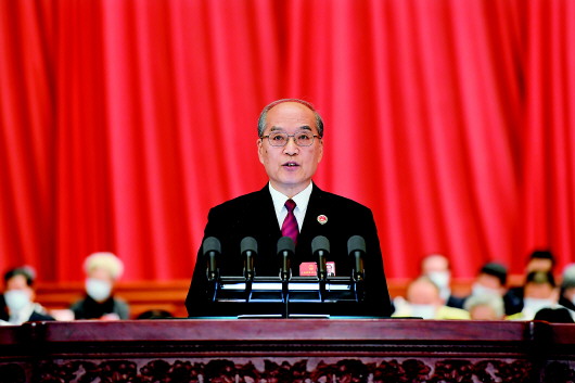 栗战书作全国人大常委会工作报告 听取和审议两高工作报告 |