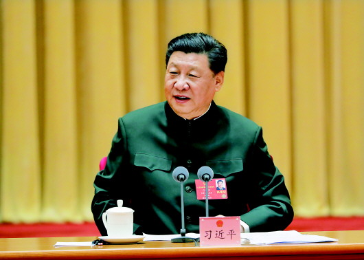 ▲5月26日下午,中共中央总书记、国家主席、中央军委主席习近平出席十三届全国人大三次会议解放军和武警部队代表团全体会议并发表重要讲话。 新华社记者李刚摄