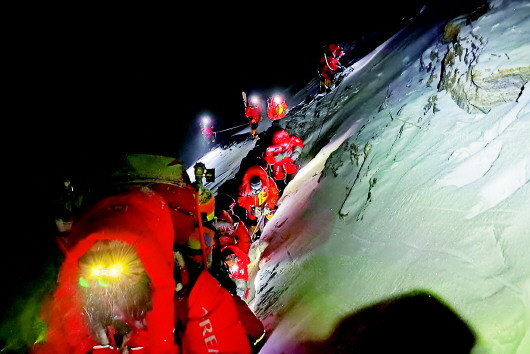 5月27日,2020珠峰高程测量登山队正在向珠峰峰顶进发。