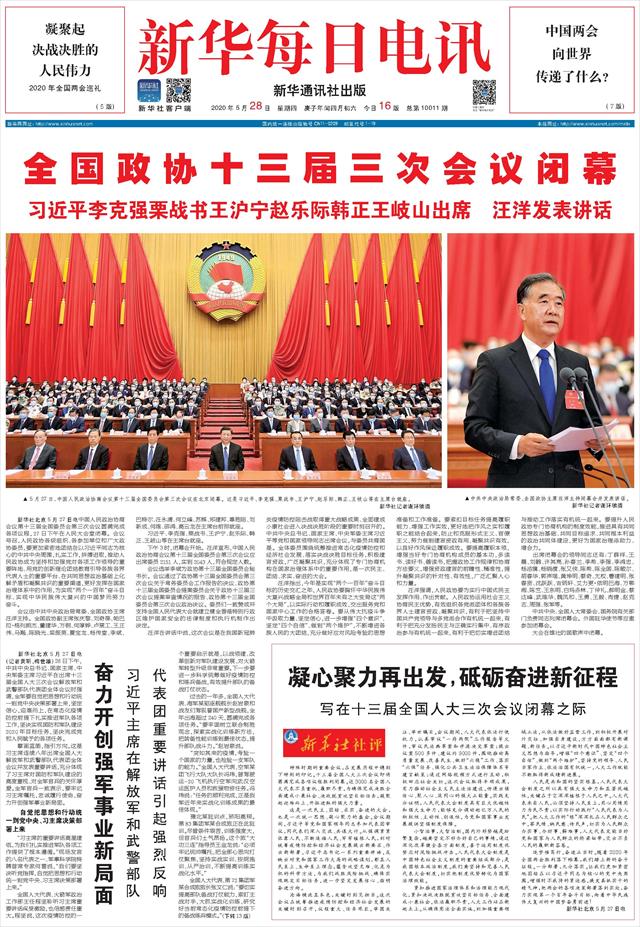 | ( 2020-05-28 ) 稿件来源:新华每日电讯 要 闻 |