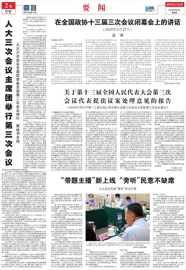 | ( 2020-05-28 ) 稿件来源:新华每日电讯 要 闻 |