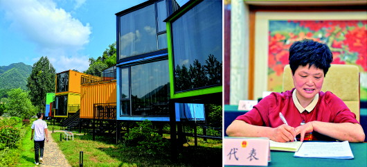 左图:浙江桐庐县合村乡“在水一方”集装箱主题精品民宿。 新华社记者黄宗治摄