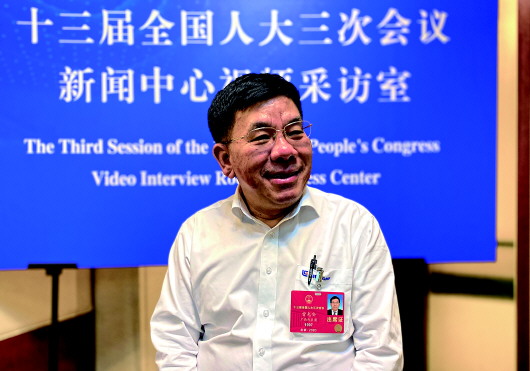 全国人大代表曾光安说,传统装备制造业的转型升级要充分利用工业互联网、大数据等技术,使数字化覆盖研发、生产、供应、营销等企业全价值链。 新华社记者温竞华摄