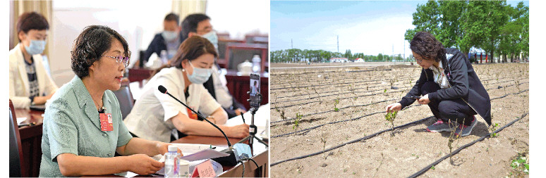 左图:5月23日,全国人大代表郭艳玲在内蒙古代表团驻地参会。 新华社发(袁永红摄)