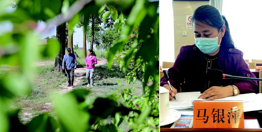 左图:5月14日,在甘肃省庆阳市镇原县临泾镇席沟圈村,村党支部书记马银萍(右)在了解村民慕全善的生活情况。新华社发(杜哲宇摄)