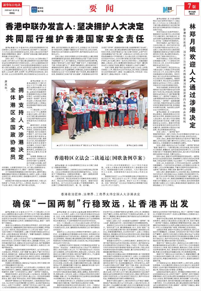 | ( 2020-05-29 ) 稿件来源:新华每日电讯 要 闻 |