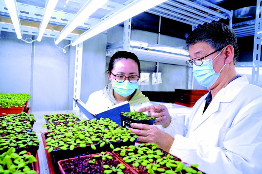 全球气候变暖造成的“高温胁迫”,对世界粮食安全造成严重威胁。利用先进的遗传工程手段,中科院分子植物科学卓越创新中心、植物分子遗传国家重点实验室郭房庆研究组,经过长达6年多的努力,在提高植物光合效率和产量方面取得突破性进展。 新华社记者张建松摄