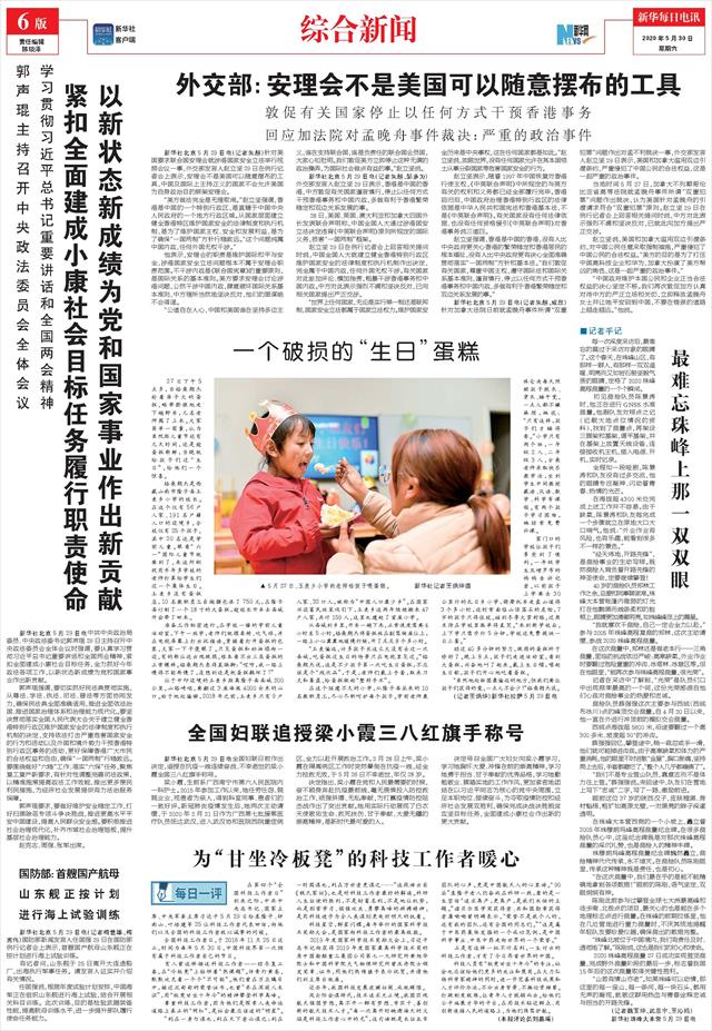| ( 2020-05-30 ) 稿件来源:新华每日电讯 综合新闻 |