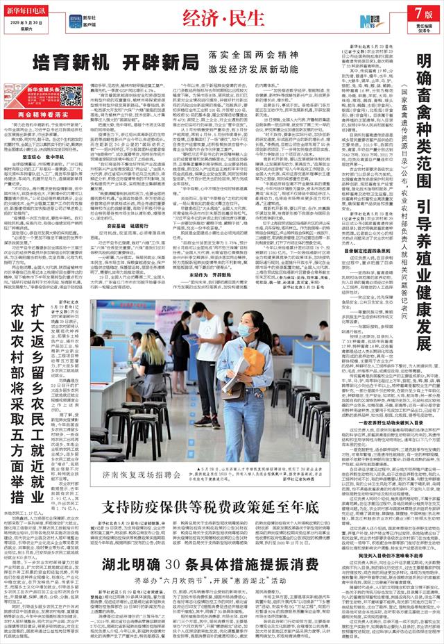 ( 2020-05-30 ) 稿件来源:新华每日电讯 经济·民生