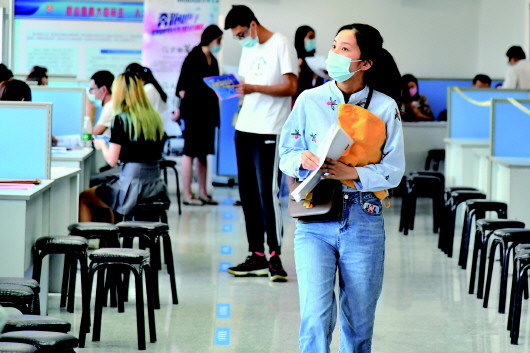 ▲5月28日,山东济南人才市场恢复现场招聘活动,吸引了39家企业参加,提供就业岗位1600个。所有入场人员须全程佩戴口罩,接受体温测试,并出示有效电子健康通行码。 新华社记者朱峥摄