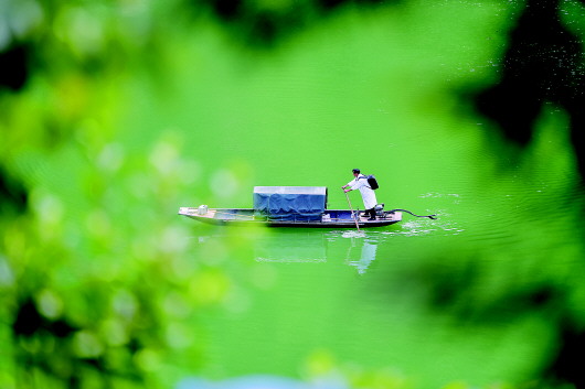 5月27日,出诊途中,村医龙光庆摇着摆渡船行进在双尧村的河道上。 |