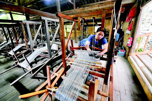 家住贵州省榕江县栽麻镇丰登侗寨的“80后”侗族女青年杨成兰2016年与丈夫放弃城里的工作,选择回到侗寨创业。夫妻俩利用两间废弃民房改造成厂房,依托家乡土布的织造工艺,进行手工织布、服装服饰、家居饰品等系列布艺产品的制作和加工,并依托电商平台销售。