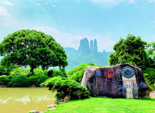 江郎山则是画卷的精华所在:三峰耸立,如天柱拔地而起,又似斧劈般紧挨,自北而南呈“川”字排列,形成高312米、长298米、宽三米多的“一线天”。2010年,江郎山作为“中国丹霞”地貌之一,被联合国教科文组织列入世界自然遗产名录。