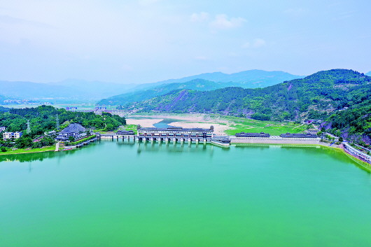 ▲这是5月22日拍摄的汉丰湖上的水位调节坝(无人机照片)。新华社发(黄伟摄)
