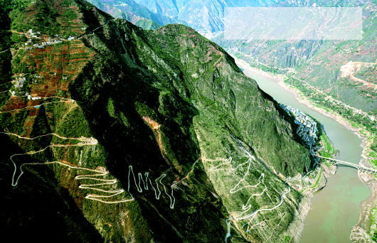 ▲上图:四川路桥公司的工人在金阳县依达乡保尔村对破损路面进行整治(6月5日摄)。下图:金阳县芦稿镇大湾子村,通村公路蜿蜒盘旋在金沙江峡谷悬崖绝壁边(6月7日摄,无人机照片)。坐落在金沙江畔的四川省金阳县是国家级深度贫困县,境内群山连绵起伏,海拔落差大,众多村寨处于高山或者高半山上,道路施工难度大。近年来,当地政府将交通作为脱贫攻坚的先导性工程,路越修越宽、越修越好。截至2019年底,金阳县实现所有乡镇通油路、建制村通硬化路,乡道里程达329.9公里,村道里程达866.8公里。 新华社记者江宏景摄