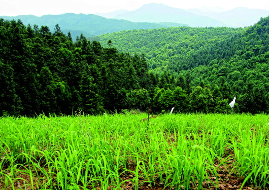 5月28日拍摄的湖南省双牌县上梧江瑶族乡青春村深山里种植的红米旱稻。新华社记者柳王敏摄 |