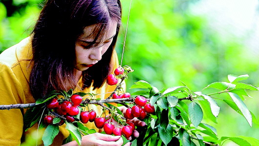 ![]() ▲李孟查看樱桃长势。 本报记者何山摄 |